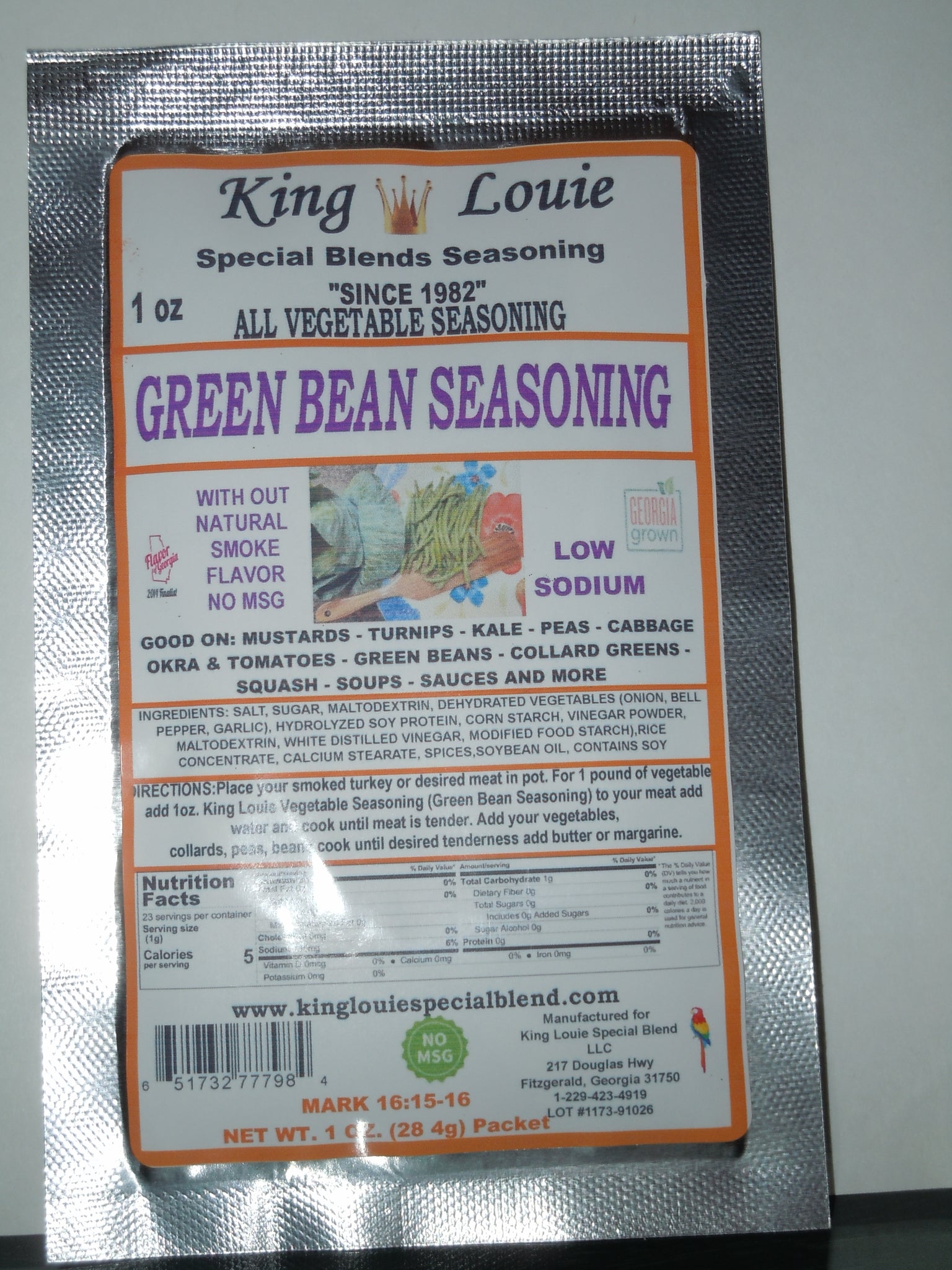 BUY 3 DEALS KING LOUIE GREEN BEAN SEASONING (THREE -10-1OZ, WHICH WILL BE A TOTAL OF 40 pieces you will receive, 1oz FOR $54.OO) FREE GIFT AND DISCOUNTED SHIPPING. (REGULAR PRICE IS $72.00).